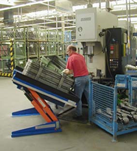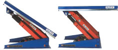 Podesty ruchome uchylne przenoszą ładunki równolegle do ramion unoszących. Umożliwia to przechył palety od +5º do -45º.Modele ALt i ART mają pełną platformę podnoszącą. Aly U, UE i GB dzięki formie U pozwala podejmować palety, skrzynio-palety bezpośrednio z wózków paletowych. Przy zastosowaniu rolek przenośnych możemy dostarczyć podest z normalną wysokością zabudowy. Otwory do montażu zabezpieczeń zjazdu są zawsze przy standardowych wykonaniach. |