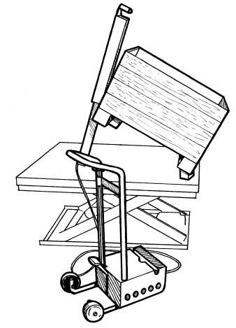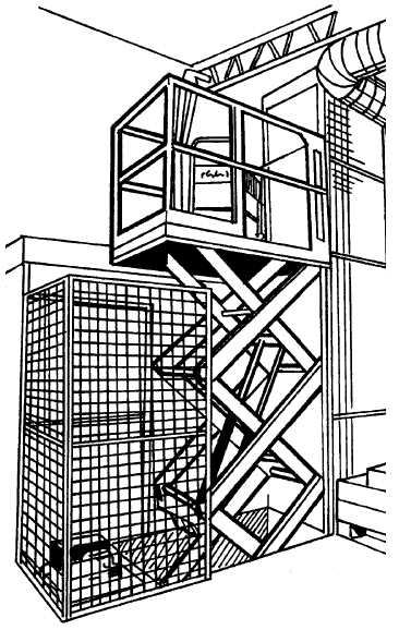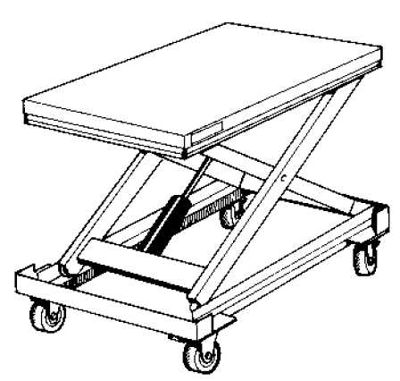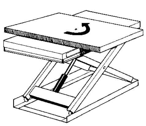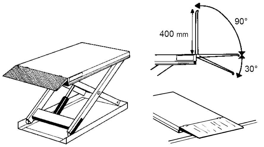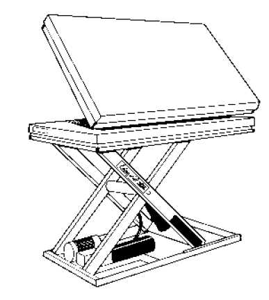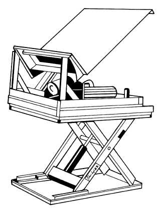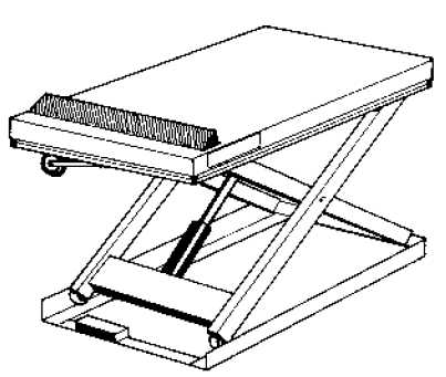 ![]() | Urządzenie podnośne widłowe: tym urządzeniem podest z płytą stołową (pusty) może być transportowany wózkiem widłowym lub paletowym między stanowiskami pracy, a przy pracach ładunkowych jest miejsce na rolki wsporcze sterownika. Konstrukcyjna wysokość większa o co najmniej 135 mm, zależnie od typu podestu. | ||